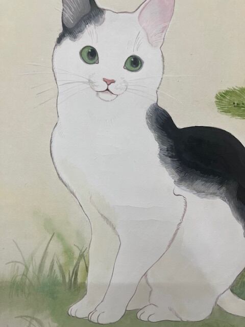 堀内路加 猫 軸装 寸法約幅58㎝縦130㎝