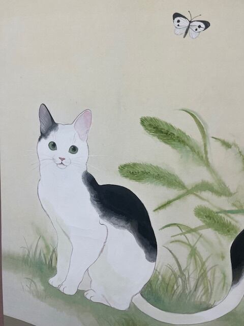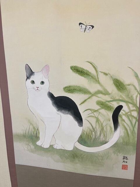 堀内路加が描く愛らしい猫の作品(軸装)は、その魅力的な表情と柔らかなタッチで、見る人の心を和ませます。この特別なアートは、お部屋に温かみと癒しをもたらし、どんなインテリアにもぴったりと調和します。芸術作品としての価値が高く、日常的にも楽しめるアイテムです!