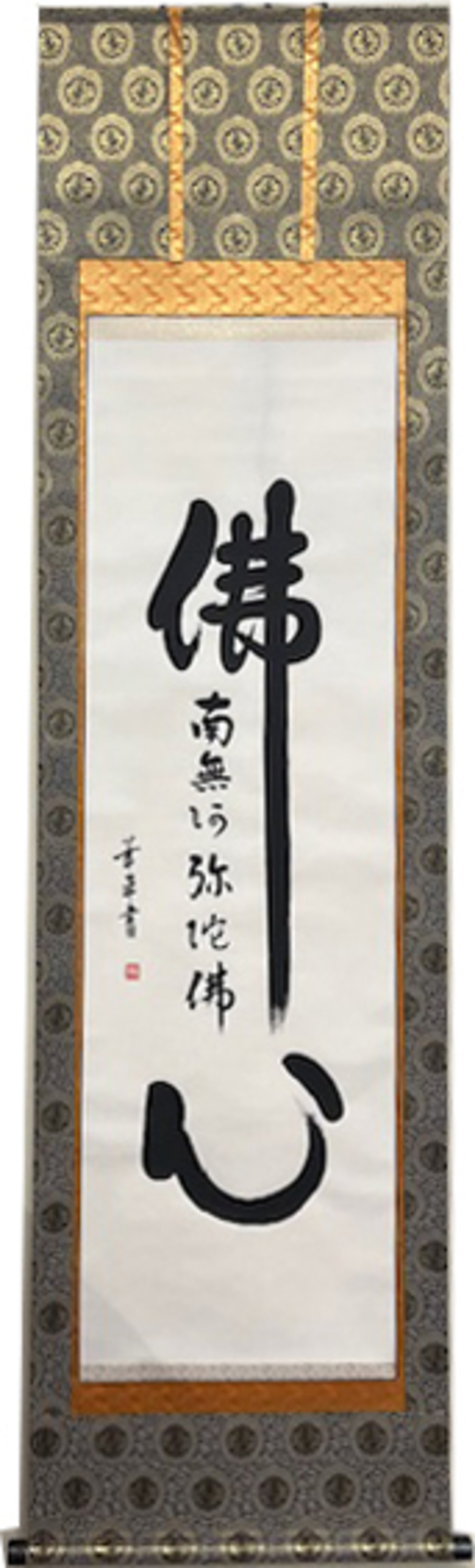 六字名号の存在は、見る人々に心の平安をもたらし、日常生活をより豊かに彩ります。本作品は手描きの趣があり、永く愛用するのに理想的な一幅です!浄土宗・浄土真宗 など