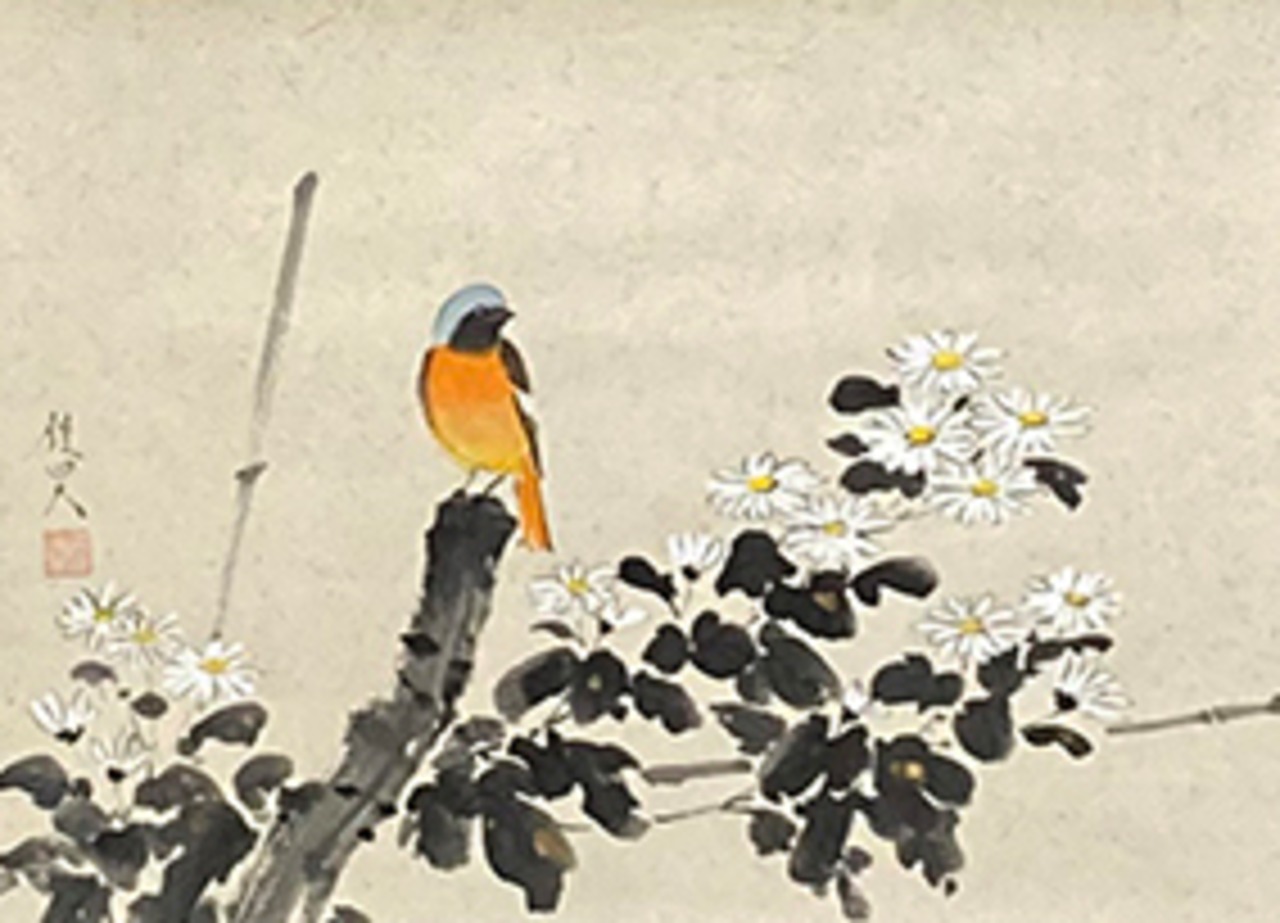 商品名:カタログ251ー30 小菊に小禽 尺五横 ギャラリー近代所属 島田佳昊 真筆